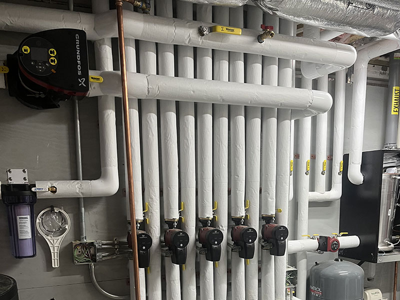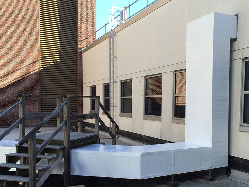 Exterior duct board wrapped in an aluminum polymer laminate that protects the insulation from the harsh weather conditions in the Northeast.