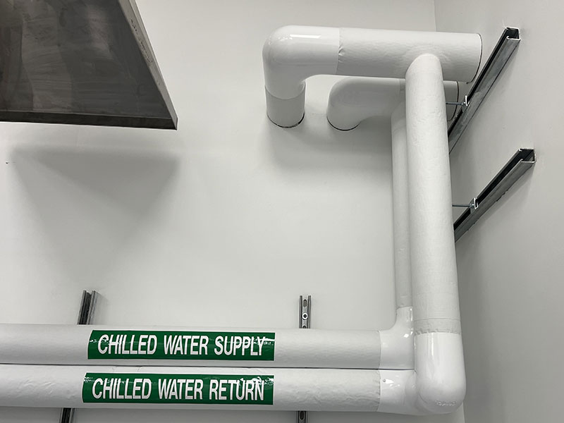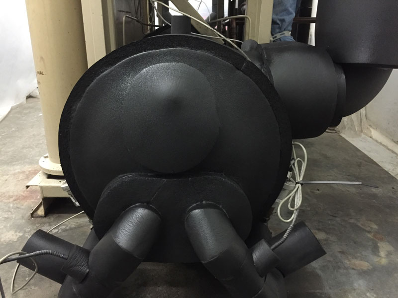 Photo is a chiller unit wrapped in closed-cell elastomeric foam insulation adhered via contact cement specific to the product.